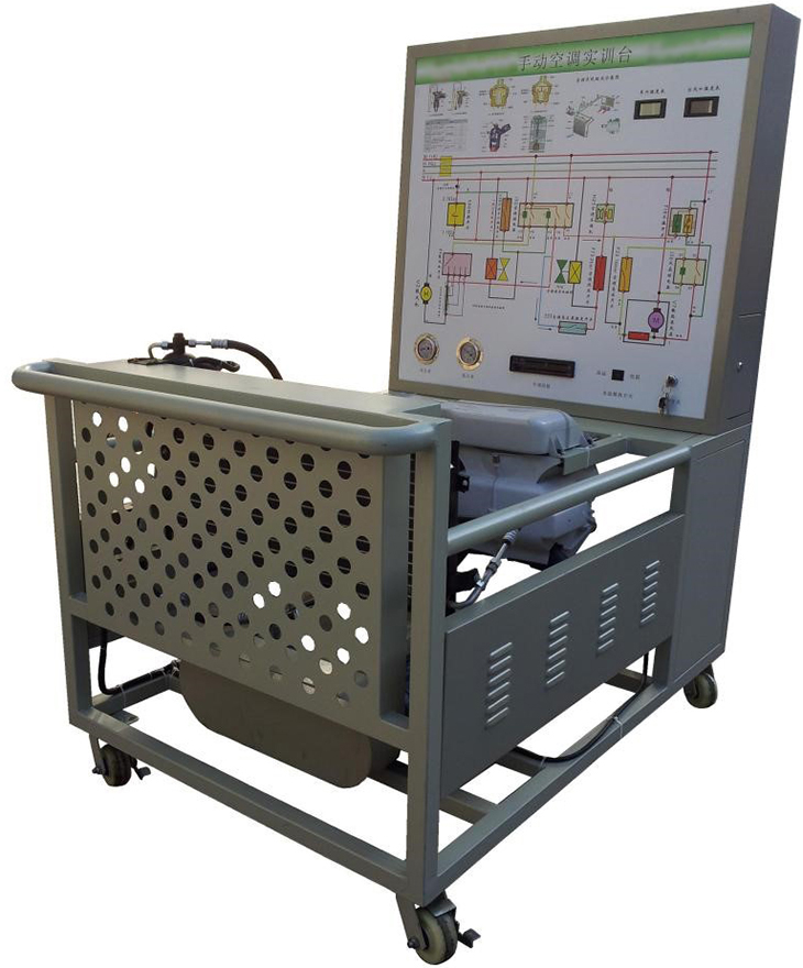 2.由三相電機(jī)做為動(dòng)力源,帶動(dòng)空調(diào)壓縮機(jī)工作。操作空調(diào)控制面板,可真實(shí)演示車輛空調(diào)系統(tǒng)的工作過程以及工作原理。