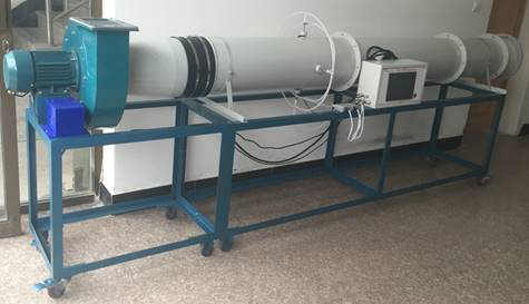 (1)入口集流器、手動螺桿節流閥門、整流柵、風機測試風管、流量及差壓傳感器測試組(在測試斷面應安裝四支畢托管,傳感測試斷面的均壓,具體參照風機測試標準),被測風機及電動機,電功率法測功率裝置,測轉速裝置,角鐵支架(所配滑輪應有剎車功能)、配電箱,標準信號流量采集傳感器1套,差壓傳感器1套,溫度傳感器18B20,所有數據由帶標準信號的7寸觸摸屏同屏顯示,便于觀察每個數據的即時變化。