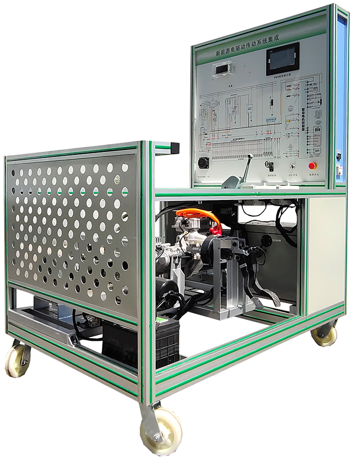 磷酸鐵鋰動力電池包及管理系統(帶CAN通訊,含24單體電池,放電繼電器,充電繼電器,預充繼電器,預充電阻,霍爾電流傳感器,維修開關,保險,充電接口,放電接口,低壓控制接口,動力電池采集模塊,BMS電池管理系統主控模塊,7寸液晶顯示屏)、驅動電機及運行部分、電子油門總成、換擋機構總成、儀表(帶CAN通訊)、變速箱、左右傳動軸、左右前輪碟剎、磁粉制動器(左右)、手動張力控制器,助力器帶泵總成,真空泵總成、電動真空助力剎車系統、真空壓力傳感器、真空罐總成、國標充電插口與充電槍、車載充電機(帶CAN通訊)、DC-DC模塊、故障設置系統、輔助蓄電池(12V45AH)、蓄電池斷電開關、急停開關、上位機軟件及數據線(電機與電池控制單元)、一體化全鋁合金型材搭建的移動臺架(1500×1000×1700mm ,帶自鎖腳輪裝置,帶安裝檢測端子的原理面板948×898mm)、故障考核系統、設備操作說明書。