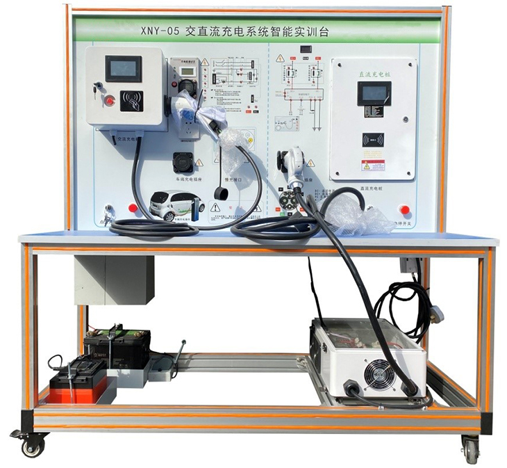 1、設備集成交流充電和直流充電設備裝配與調試功能,可同時滿足交流充電與直流充電樁裝配、調試及檢測練習和考核,可通過設備上觸摸屏界面切換交流充電或直流充電。