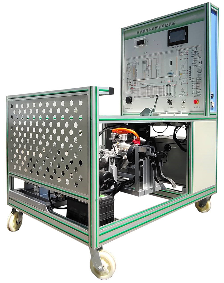 電驅動系統實訓臺選用純電動車交流異步電機與控制器、智能工況模擬系統、鋰電池及管理系統(BMS)、儀表、傳動系統、電子真空液壓制動系統、模擬加載控制器、加載器、教學板等真實器件制作的實驗實訓臺架,可完成動力驅動系統相關的實驗實訓內容。適合于各類院校對電驅動傳動系統、鋰電池及管理系統(BMS)等系統理論和維修實訓的拆裝與維護、結構與原理認知、系統操作、功能動態演示、故障檢測與診斷教學需要。