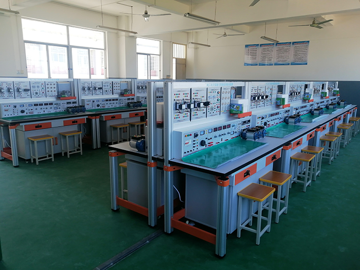電工電子電拖PLC綜合實訓考核裝置"教學做"電工一體化教室以電氣運行與控制專業必備的電氣設備安裝、操作、維護與應用崗位能力為重點,以照明線路、電動機繼電控制線路和常用機床電氣控制技能為目標,成為集教學、培訓、服務和學生創新活動于一體的高水平綜合性實踐教學基地。