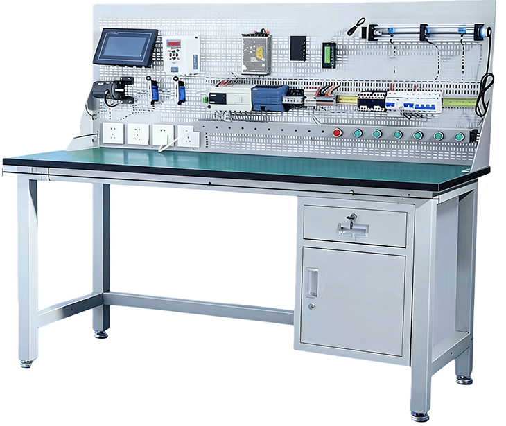 PLC與變頻控制實(shí)訓(xùn)室設(shè)備主要面向PLC系統(tǒng)設(shè)計(jì)師崗位,培養(yǎng)學(xué)生PLC基本編程、PLC小型控制系統(tǒng)的設(shè)計(jì)、變頻器使用與調(diào)試等能力。PLC與變頻控制實(shí)訓(xùn)室可進(jìn)行PLC操作技能的訓(xùn)練,PLC基本指令、步進(jìn)指令、功能指令編程訓(xùn)練,PLC控制系統(tǒng)的程序編制和調(diào)試,PLC應(yīng)用項(xiàng)目訓(xùn)練及PLC工程項(xiàng)目開(kāi)發(fā),變頻器實(shí)訓(xùn)及項(xiàng)目開(kāi)發(fā)研究。是自動(dòng)化類專業(yè)、機(jī)電一體化專業(yè)和機(jī)器人專業(yè)《電氣控制與PLC技術(shù)應(yīng)用》、《PLC技術(shù)與實(shí)踐》、《變頻與伺服控制技術(shù)》等課程開(kāi)展教學(xué)做一體化教學(xué)的主要場(chǎng)所。