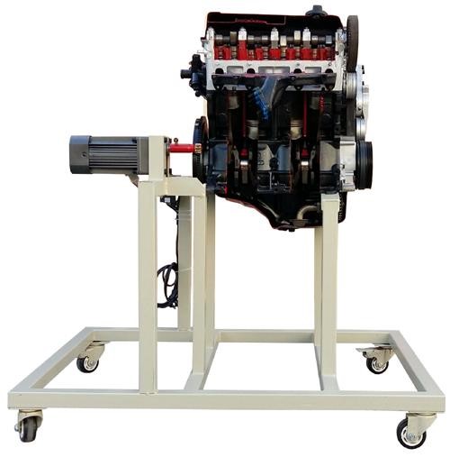 5、拆裝發動機(運轉)帶翻轉架:采用大眾TSI缸內直噴電控汽油發動機總成(易于拆裝),組裝在專用發動機拆裝翻轉架上。采用減速翻轉機構,可使發動機任意角度旋轉,并能任意位置鎖止,便于學生從不同的角度進行拆卸和裝配。底部放置大面積接油盤,便于小零件或螺絲的集中存放。拆裝翻轉架采用高強度的鋼結構焊接,表面經噴涂工藝處理,底部帶有自鎖腳輪裝置,可移動式,方便教學。